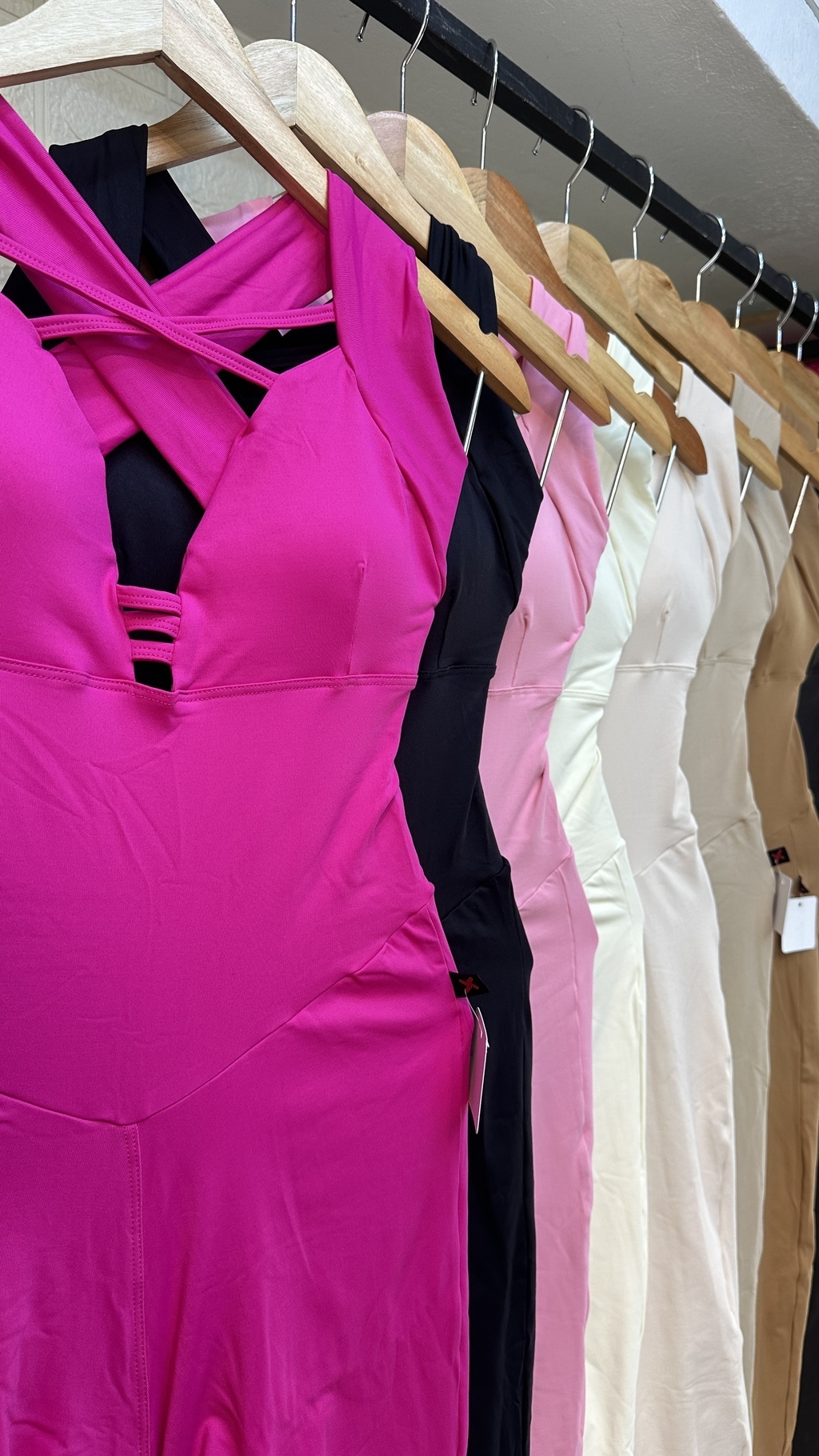 BUSTO: Top super estruturado, com bojo removível, peça toda revestida com elastico para sustentação, alças grossas que contornam desde o decote até o V das costas