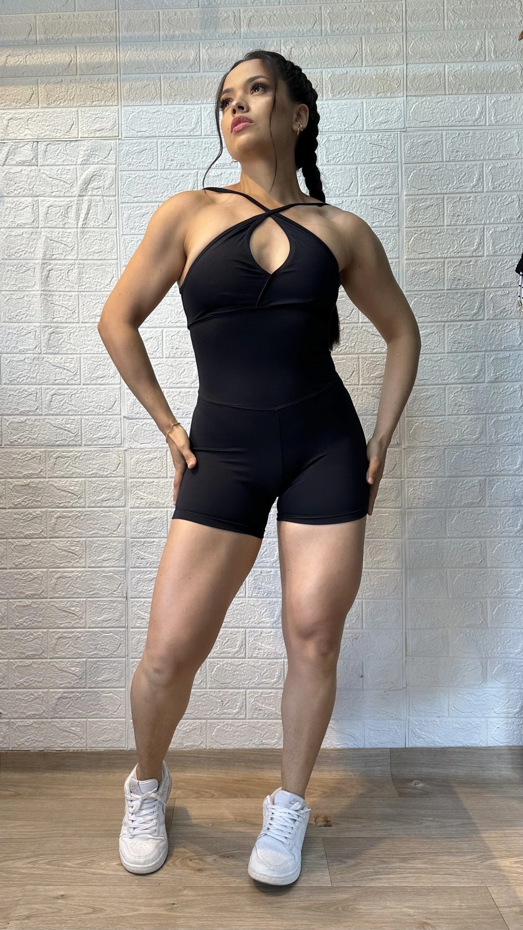 com silhueta em V tanto para frente (modelagem de silhueta), quanto nas costas no arco do glúteos e modela bumbum.
